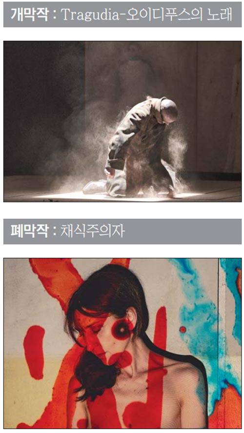 폐막작은 지난해 노벨문학상을 수상한 한강 작가의 동명 소설을 원작으로 한 이탈리아 연극 ‘채식주의자’(31일·6월 1일)가 공연된다. 지난해 10월 이탈리아 볼로냐 초연을 시작으로 유럽 주요 도시에서 공연되며 화제를 모은 작품으로, 아시아에서 무대에 오르는 것은 이번이 처음이다. 이 외에도 축제 기간에는 ▷이스라엘 극단 베이트 레신 씨어터의 연극 ‘안티고네’ ▷프랑스 극단 시티오의 인형극 ‘어센션’ ▷일본 극단 Mum&gypsy와 이탈리아 7개 극장 및 페스티벌이 공동 제작한 연극 ‘체어 / 일 포스토’ ▷국내 극단 배우창고의 ‘워 아이니?’ 등 국내외에서 호평받은 우수 작품을 만나볼 수 있다. 각 공연이 끝난 뒤에는 공연자와 관객이 자유롭게 대화를 나누는 ‘아티스트 토크’도 진행된다.