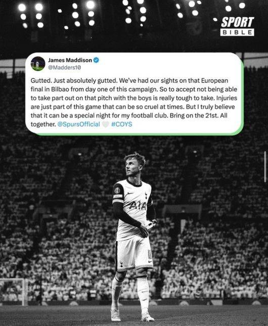 매디슨은 소셜 미디어에 "처참하다. 정말 참담한 심정이다. 시즌 첫날부터 우리는 빌바오에서 열리는 유로파 결승전을 목표로 삼았다. 그 경기장에서 팀 동료들과 함께 뛸 수 없다니 정말 받아들이기 어렵다. 부상은 그저 이 스포츠의 일부일 뿐이다. 하지만 때때로는 정말 너무나 잔인하다"라며 결승전에 뛸 수 없다고 직접 알렸다.