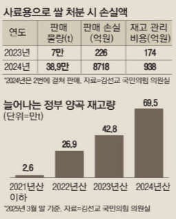 현재 정부의 양곡 재고량은 2021년산 이하 2만6000t, 2022년산 26만9000t, 2023년산 42만8000t, 2024년산 69만5000t이다. 당장 2022년산 이전에 생산된 양곡을 서둘러 소진하지 않으면 이중 대다수는 향후 사료용으로 전환될 가능성이 크다.
