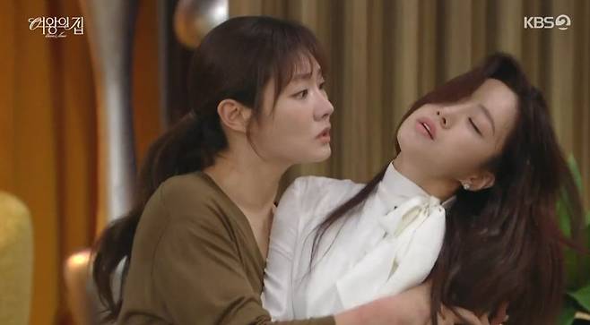 20일 KBS 2TV ‘여왕의 집’에선 기만(강성민 분)을 가정폭력으로 신고하려는 재인(함은정 분)과 이를 막고자 임신한 재인을 밀치는 숙자(이보희 분)의 모습이 그려졌다.