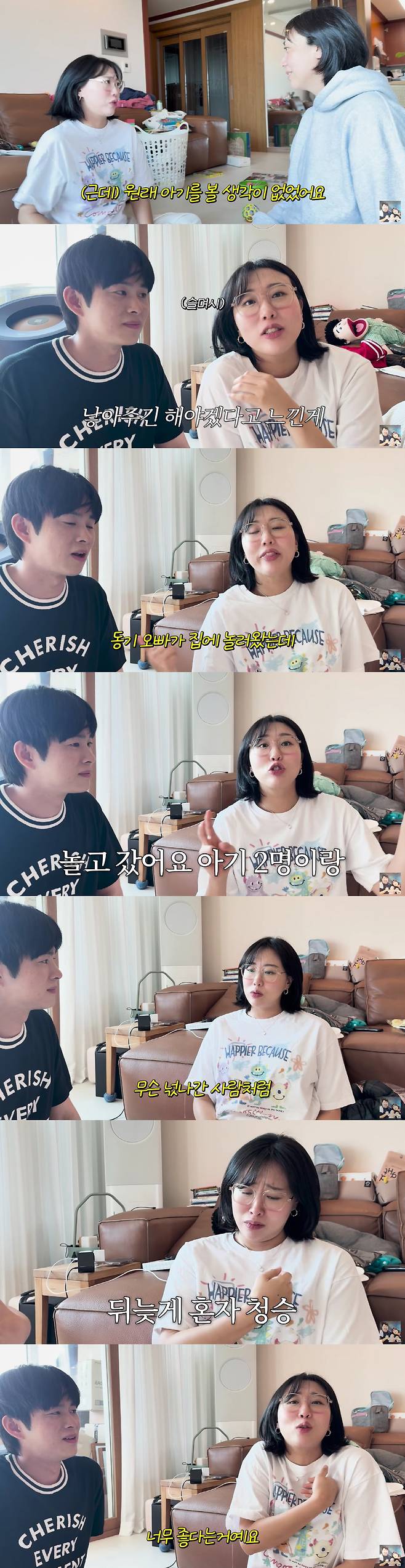 20일 유튜브 채널 '기유TV'에는 '{이모삼촌로그} 예비 엄빠 엔조이커플'이라는 제목의 영상이 올라왔다. 영상에는 이은형, 강재준 부부의 집을 방문한 임라라, 손민수 부부의 모습이 담겼다.