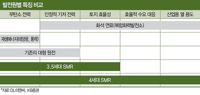 SMR은 대형 원전 대비 출력을 낮춘 중소형, 모듈형 원자로를 말한다. 하나의 용기에 원자로와 증기 발생기, 냉각재 펌프, 가압기 등 주요 기기를 모두 담은 일체형이다. 보통 1000메가와트급(㎿) 이상인 경우를 대형 원전으로, 300㎿급 이하를 SMR로 분류한다. SMR의 최대 장점은 짧은 건설 기간과 상대적으로 저렴한 비용이다. 대형 원전에 비해 설계가 단순한 덕분이다. 대형 원전 1기를 짓는 데 10년 이상이 걸리는 데 비해 SMR은 3년 이내에 건설을 마무리할 수 있다. 안전성도 우월하다. 중대 사고 확률이 10억년에 1회 수준에 그쳐 대형 원전(10만년에 2회)보다 훨씬 낮다. SMR은 피동안전계통을 채택해 원천적으로 일본 후쿠시마 사태 같은 대형 사고가 발생하기 어려운 구조다. 피동안전계통은 별도 전원 없이 중력 같은 자연의 힘만으로 원전 내부를 냉각할 수 있는 안전 시스템이다. 예를 들어 목욕탕 열탕 위 천장에서 차가운 물이 맺혀 떨어지는 것처럼, 원전 내부 증기가 상부 열 교환기를 거쳐 냉각수로 변환돼 열을 식히는 구조다. 경제성과 안전성을 두루 갖춘 차세대 에너지원이다. 김동원 KB증권 리서치센터장은 “AI 수요를 맞추기 위한 데이터센터가 급증하며 전력 공급이 수요를 못 따라가는 데다 AI 데이터센터는 일반 데이터센터와 달리 방대한 전력을 소비한다”며 “친환경성과 안정적인 전력 공급을 도입하고자 하는 시장 요구에 맞춰 SMR의 중요성이 커지고 있다”고 설명했다.