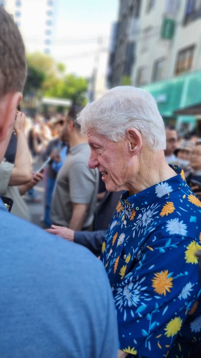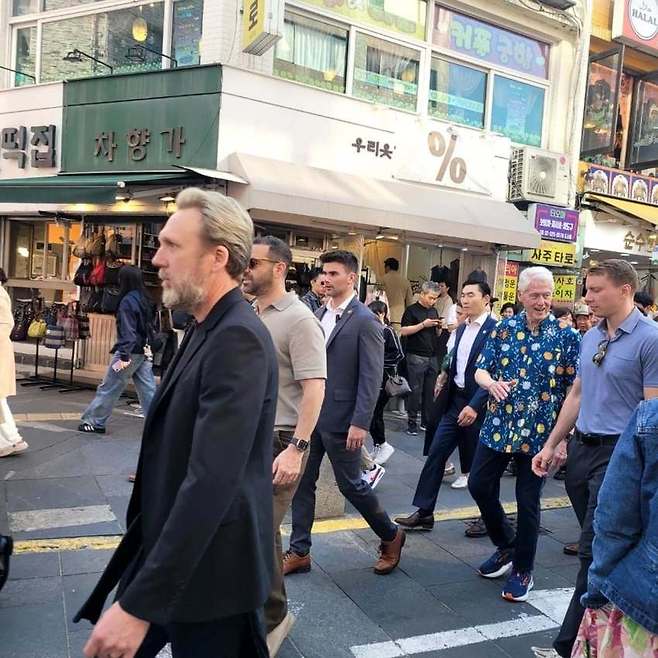 이날 온라인 커뮤니티에는 서울 광화문광장과 인사동에서 클린턴 전 대통령을 목격했다는 글이 다수 올라왔고, 빌 클린턴 전 대통령이 광화문광장 세종대왕상 앞에서 동행들과 어깨동무를 하고 찍은 사진이 퍼지기도 했습니다.