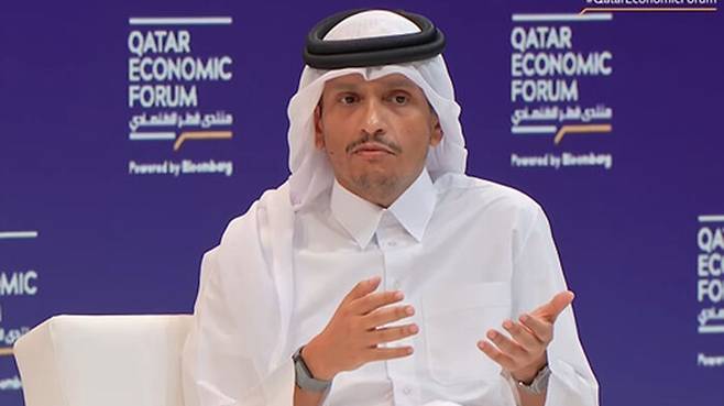 ▲ 카타르경제포럼서 대담 중인 카타르의 셰이크 무함마드 빈 압둘라흐만 알타니 총리