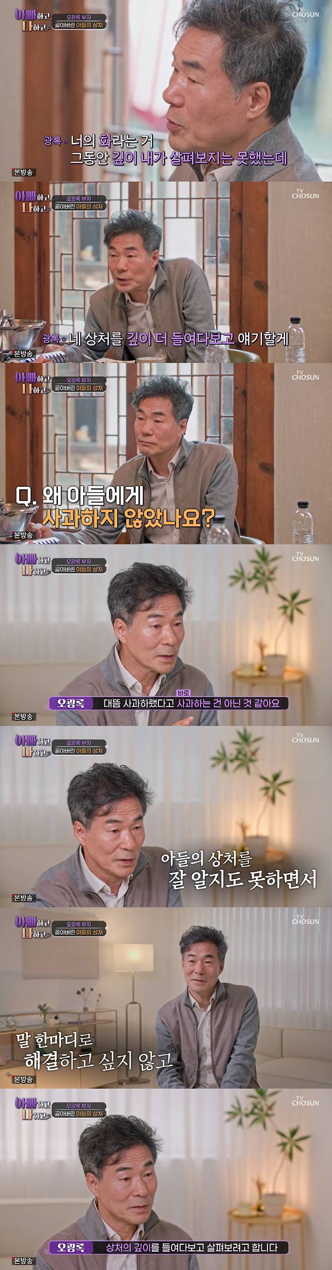 오광록은 "너의 화를 내가 깊이 살펴보지 못 했는데, 네가 나에게 화가 나 있다는 건 알고 잇었다"며 "네가 아빠한테 말을 던졌으니까, 내가 네 상처를 더 깊이 들여다보고 이야기 하겠다"라고 약속했다.