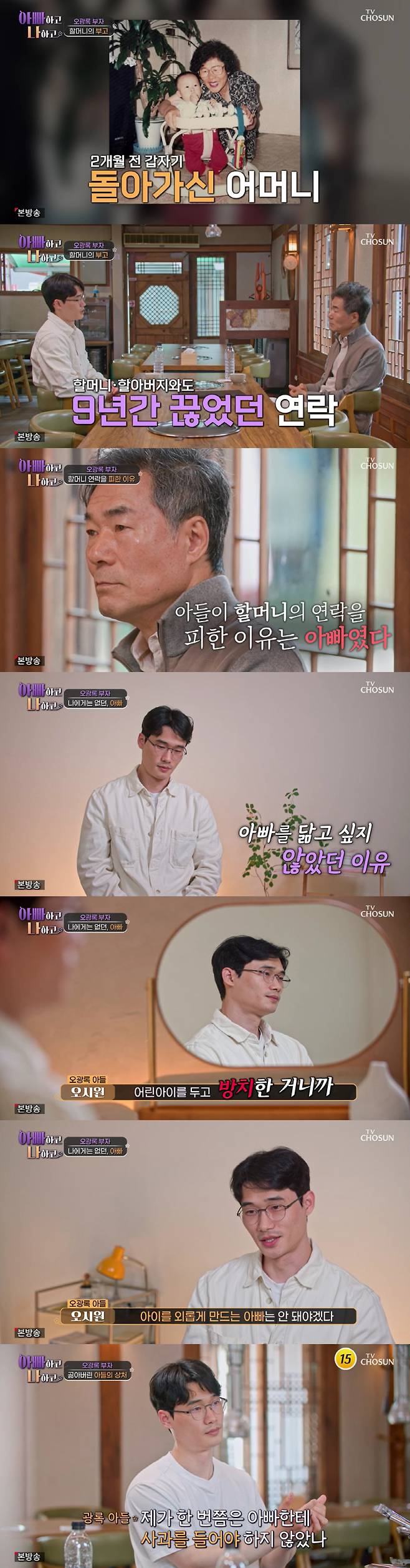20일 방송된 TV CHOSUN '아빠하고 나하고'에는 오광록이 아들 오시원과 7년 만에 재회한 뒤 첫 식사를 갖는 장면이 그려졌다.