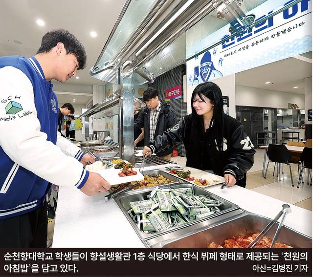 순천향대 스마트자동차학과 3학년 박영현씨(24)는 지난해 복학한 뒤 하루도 빠지지 않고 아침밥을 챙겨먹고 있는 단골 손님이다. 박씨는 “자취를 하며 아침을 거르는 게 일상이었지만 단돈 1000원이니 ‘한번 먹어보자’는 생각으로 참여했다가 지금은 매일 먹고 있다”며 “아침을 먹으면 오전 수업 때 집중이 잘되고 규칙적인 생활이 가능해 빼먹지 않고 있다”고 말했다.