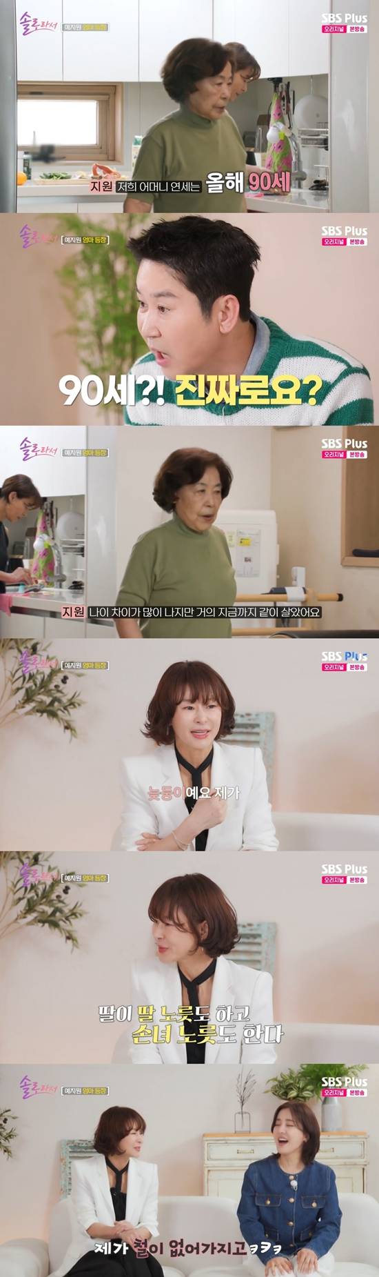 또 배우 예지원은 90세 어머니와 동거 중이라고 밝혔다. 예지원은 "저희 어머니 연세는 올해 90세시다. 어머니가 저를 늦게 보셔서 나이 차이가 많이 나지만 거의 지금까지 같이 살았다. 제가 늦둥이다"라고 말했다.