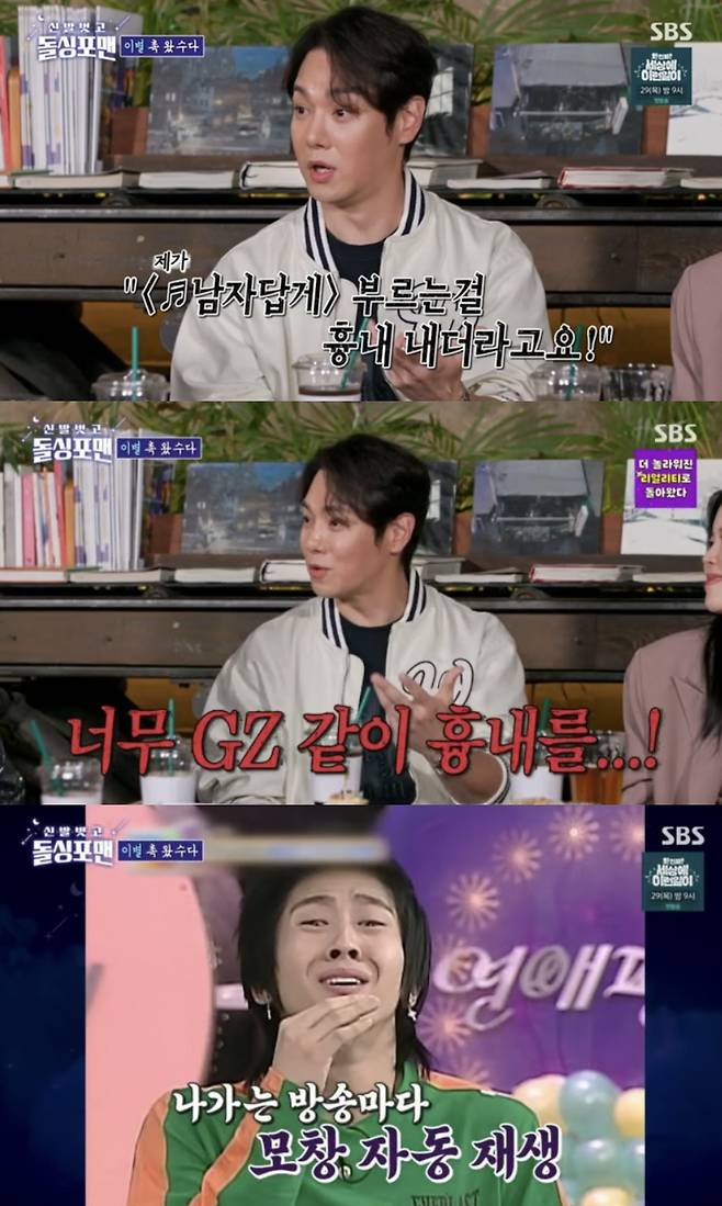 환희는 "2005년 '남자답게'가 '미싱유' 다음으로 사랑받았다. 그런데 어느 날부터 브라이언이 내가 '남자답게' 부르는 걸 흉내 내더라. 사람들은 너무 재미있어 했지만, 내가 봤을 땐 너무 못 생겼었다. 너무 거지같이 흉내 내서 화가 났다"고 털어놨다.