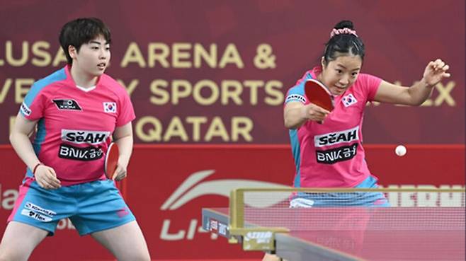 ▲ 세계탁구선수권 여자복식에 나선 유한나(왼쪽)와 신유빈