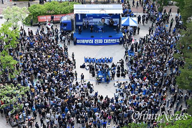 | ▲ 이재명 더불어민주당 대선 후보가 20일 경기 파주시 금릉역 광장에서 열린 파주시 유세에 참석해 지지를 호소하고 있다. |