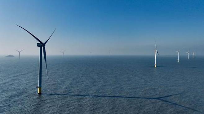 ▲ 전남해상풍력 1단지에 설치된 풍력발전기 10기