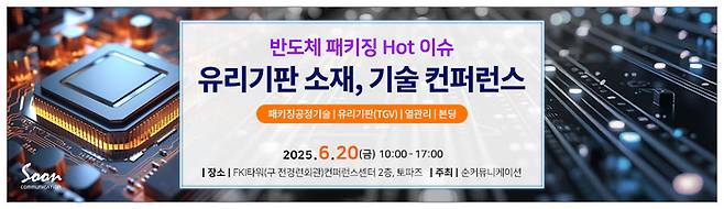 순커뮤니케이션은 6월 20일(금) FKI타워(구 전경련회관) 컨퍼런스센터 2층 토파즈 룸에서 "반도체패키징 Hot이슈-유리기판 소재, 기술 컨퍼런스"를 개최한다.