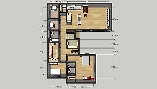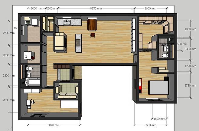 수중에 돈도 얼마 없고 앞으로 얼마나 더 필요할지 알 수 없었다. 그저 현재의 주거 형태가 바뀌어야 한다는 일념으로 무작정 유튜브를 검색해 3D 모델링 프로그램인 스케치업을 속성으로 배우고 원하는 평면도를 그려봤다.
