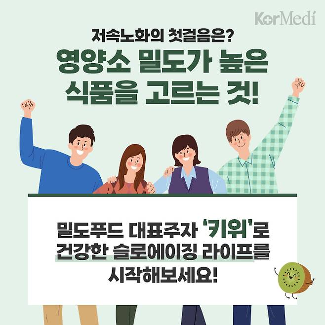 이제는 양보다 질이 중요한 시대다. 영양소 밀도가 높은 식품을 고르는 작은 변화가 저속노화의 첫걸음이 될 수 있다. 아직도 '영양소 밀도'를 고려하지 않고 있다면, 밀도푸드의 대표주자 키위를 통해 건강한 슬로에이징 라이프를 시작해보는 것은 어떨까.