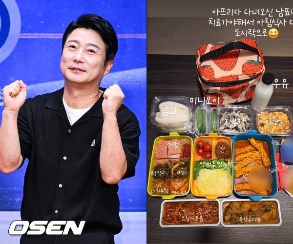 박지연은 21일 “아프리카 다녀오신 남편. 치료 가야해서 아침식사 대신 도시락으로”라며 사진을 공개했다.