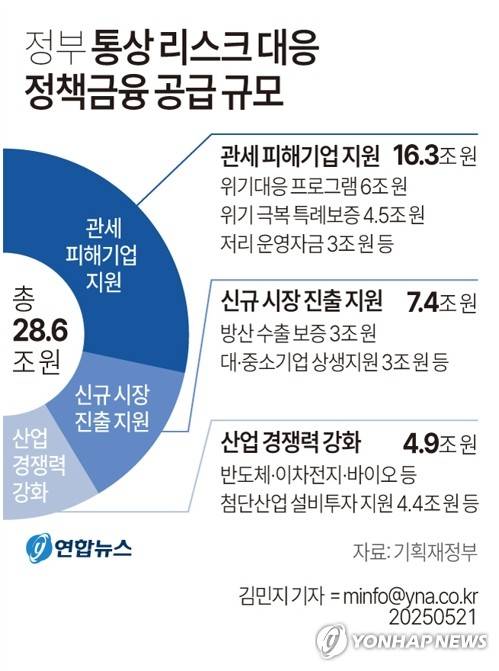 (서울=연합뉴스) 김민지 기자 = 21일 기획재정부에 따르면 정부가 통상 리스크 대응을 위해 28조6천억원 규모의 정책금융을 공급한다.