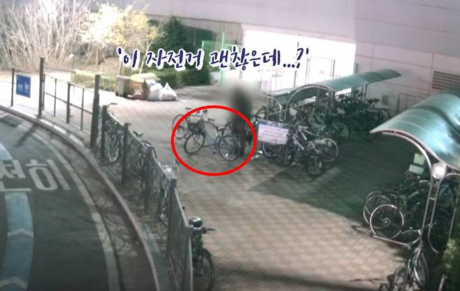 같은 날 밤, 해당 주차장에 들어온 A 씨는 자신이 타고 온 자전거를 세워 두더니 B 씨 자전거를 유심히 살폈다. 그러더니 B 씨 자전거를 끌고 사라졌다.