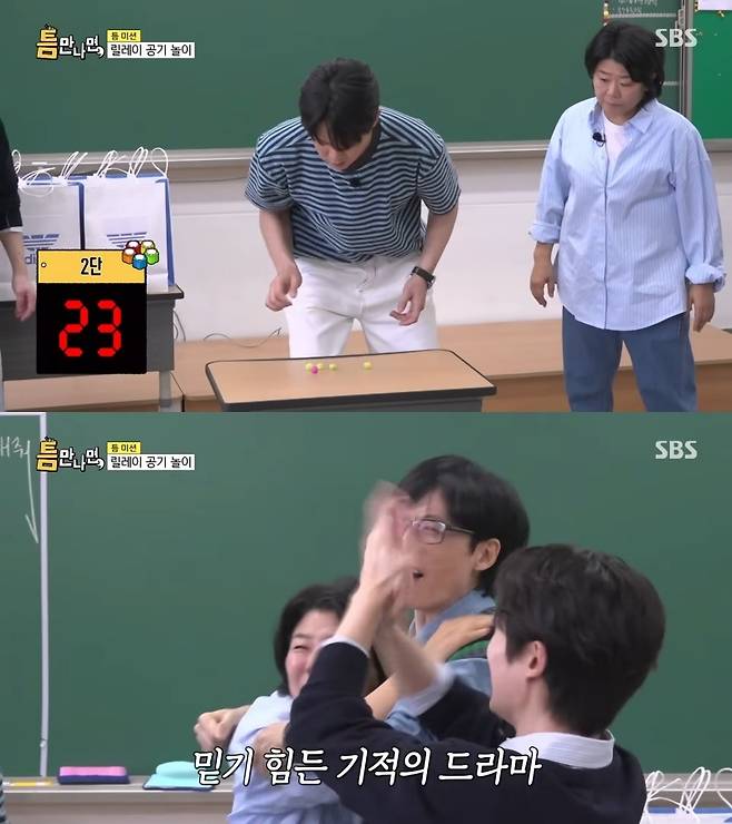그런 점에서 SBS의 <틈만나면>은 제법 독특한 사례로 평가할 만하다. 지난해 봄 첫 등장 한 이래 어느덧 세번째 시즌을 맞이한 <틈만나면>은 MC 유재석·유연석과 초대손님 한두 명이 매주 일상의 틈 같은 여유를 기다리는 시청자들을 찾아가 소소한 게임을 진행하는 평범한 방식으로 쏠쏠한 인기를 모으고 있다.