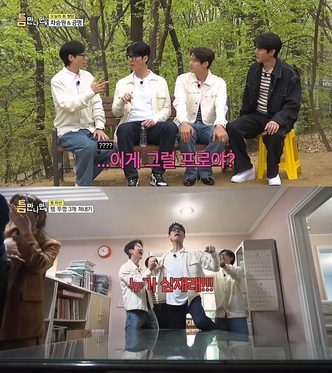 "이게 시즌3까지 갈 프로그램이야?"라는 재치 넘치는 막말(?)로 시작해서 촬영 도중 "나는 올해 삼재야"라는 자폭성 토크를 늘어 놓던 차승원은 막상 게임에 성공하자 "누가 삼재래?"라고 태도를 180도 바꾸며 웃음을 안겨줬다. 당시의 활약상은 각종 숏폼 영상 등으로 재생산되면서 <틈만나면>에 대한 관심을 상기시키는 중요한 몫을 차지했다.