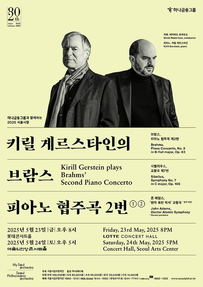 서울시향은 이 작품 초연 지휘를 현대음악에 정통한 데이비드 로버트슨에게 맡겼다. 이 작품에 영감을 주었다는 시벨리우스 교향곡 7번도 함께 연주된다. 로버트슨은 시향과 인터뷰에서 “두 작곡가 모두 소리를 다루는 방식에 있어 본질적이고 원초적인 접근법을 취한다. 마치 음악적 현미경을 통해 작은 표현적 입자들을 관찰하고, 이러한 작은 요소들이 어떻게 결합하여 더 큰 형태로 발전하는지를 탐구하는 것 같다”며 “이들의 음악에서 시간의 흐름에 따라 구조가 진화하는 방식과 각 작품 내에서 전개되는 생성 과정을 사랑한다. 또한 이 음악들에서 우리는 핵시대를 전후한 명확한 변화 또한 느낄 수 있다”고 소개했다. 이번 공연 협연자로는 세계적 피아니스트 키릴 게르스타인이 브람스 피아노 협주곡 2번을 들려준다. 23일 서울 잠실 롯데콘서트홀, 24일 서울 서초 예술의전당.