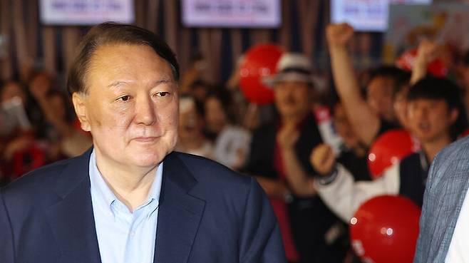 ▲ 윤석열 전 대통령이 21일 서울 메가박스 동대문에서 이영돈 PD가 제작한 다큐멘터리 영화 '부정선거, 신의 작품인가'를 관람하기 위해 상영관으로 향하고 있다.