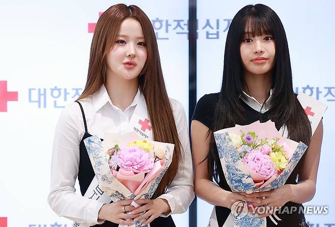 (서울=연합뉴스) 진연수 기자 = 대한적십자사 청소년적십자(RCY) 홍보대사로 위촉된 그룹 키스오브라이프 벨(왼쪽)이 21일 오전 서울 중구 대한적십자사 서울사무소에서 열린 홍보대사 위촉식에서 소감을 밝히고 있다. 2025.5.21