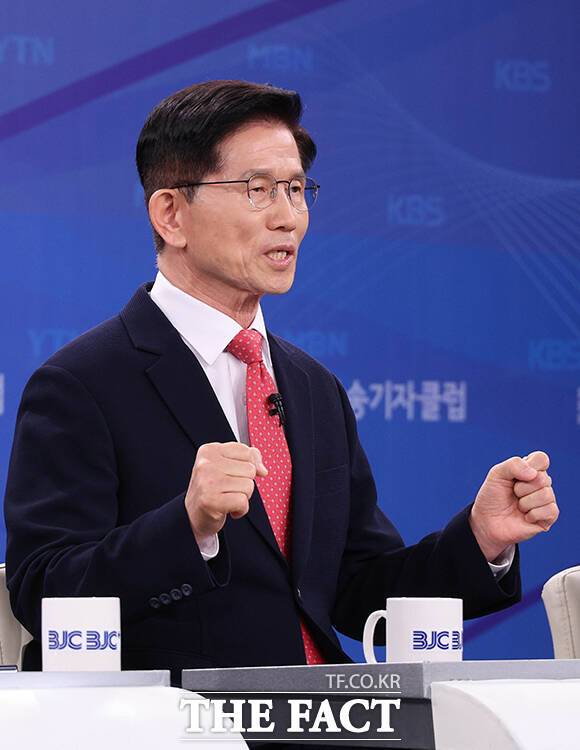 [더팩트ㅣ남윤호 기자] 김문수 국민의힘 대선 후보가 21일 경기도 고양시 MBN 미디어센터에서 열린 한국방송기자클럽 대선 후보 초청 토론회에서 모두발언을 하고 있다.