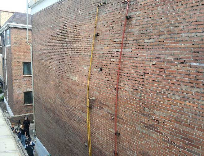 안전진단 업체 관계자는 "건물에는 내벽과 외벽인 벽돌 마감이 있는데 내벽과 벽돌을 이어주는 철물이 오래되면 강도가 약해져서 벽돌을 지탱해주는 힘이 약해져 이런 현상이 발생할 수 있다"고 설명했습니다.