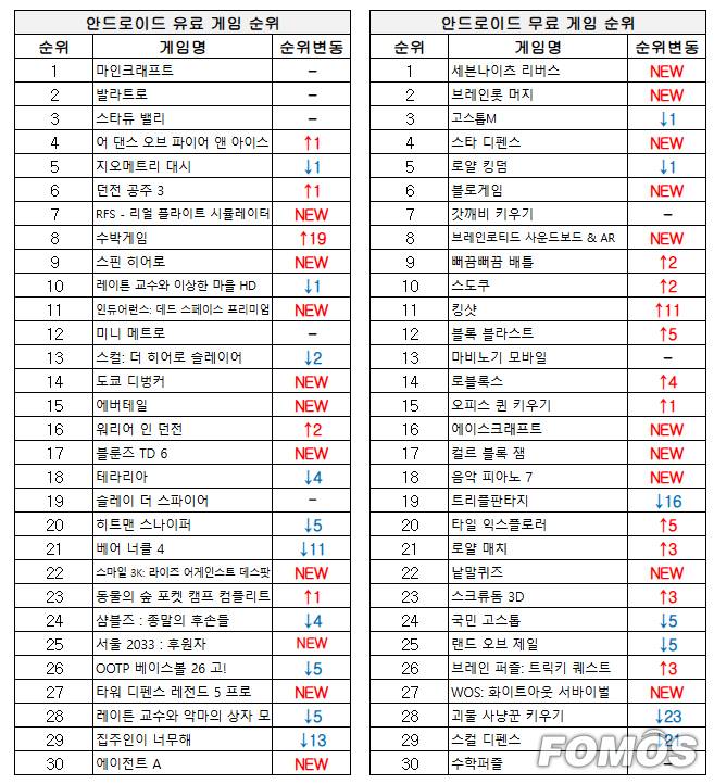 새롭게 차트에 오른 게임이 강세를 보인 가운데 지난주 인기 게임은 순위가 하락한 모습을 보였다.