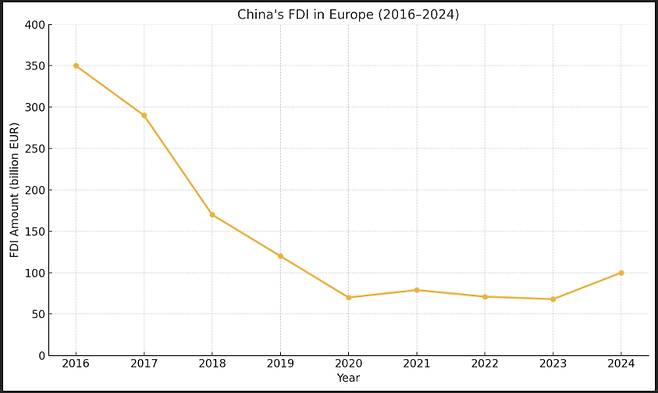 그럼에도 불구하고 유럽 내 중국 FDI는 당분간 계속해서 늘어날 전망이다. 때맞춰 이뤄진 도널드 트럼프 대통령의 무차별 관세 폭격이 중국과 유럽 간 밀착을 더 강하게 만들었다는 점도 영향을 주고 있다.