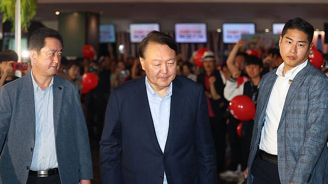▲ 윤석열 전 대통령이 21일 서울 메가박스 동대문에서 이영돈 PD가 제작한 다큐멘터리 영화 '부정선거, 신의 작품인가'를 관람하기 위해 상영관으로 향하고 있다.