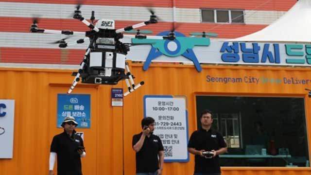 경기 성남시가 분당 중앙공원과 탄천 물놀이장에서 드론 배송 서비스를 운영합니다.