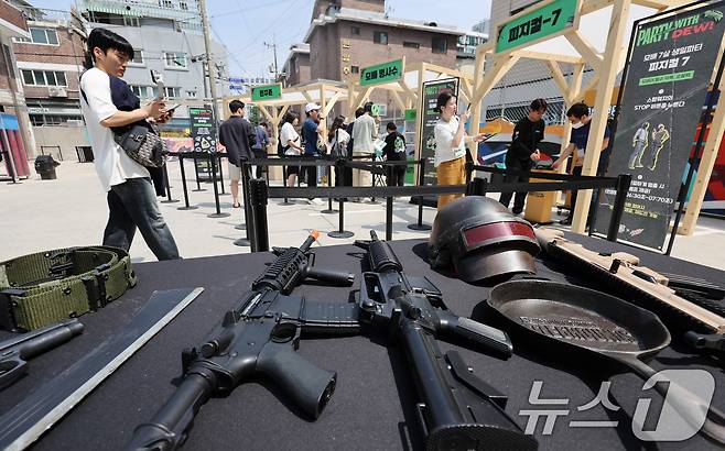 (서울=뉴스1) 장수영 기자 = 21일 오후 서울 성동구 펍지 성수에서 열린 배틀그라운드 모바일 7주년 팝업스토어를 찾은 게이머 등 시민들이 행사장에 마련된 각종 체험을 하고 있다. 2025.5.21/뉴스1