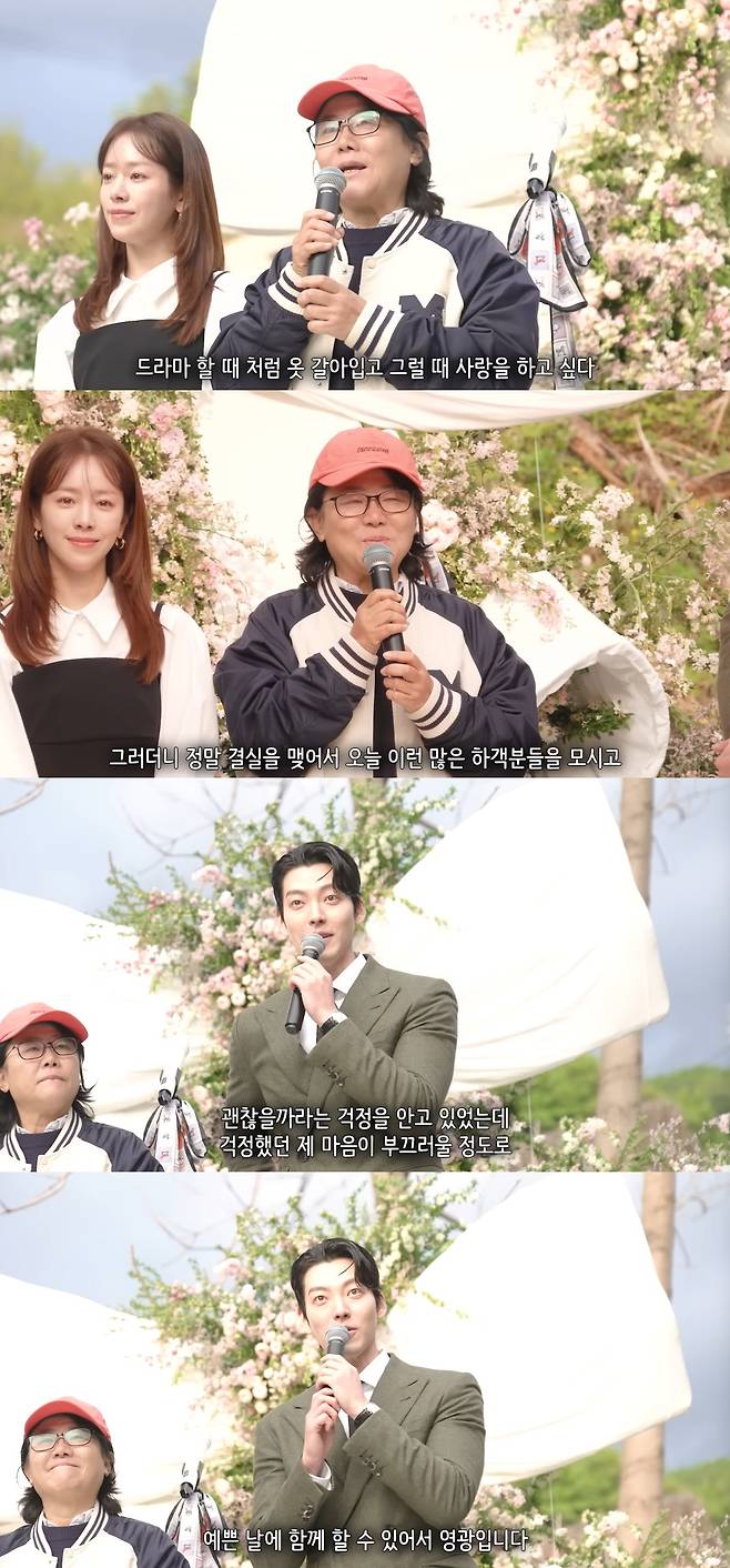 이어 '우리들의 블루스' 한지민, 이정은, 김우빈이 나섰다.
