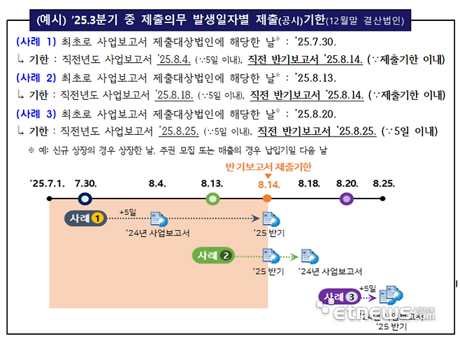 신규 상장법인에 대한 공시 규정도 강화했다. 앞으로는 최초 사업보고서 제출 의무가 발생하는 기업은 직전년도 사업보고서에 더해 직전 분기 또는 반기보고서도 5일 이내 공시해야 한다.