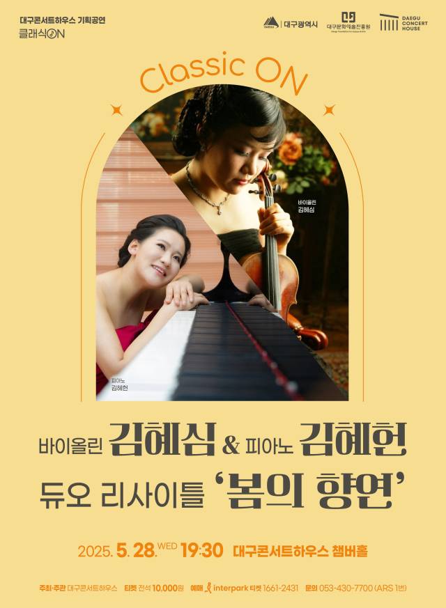 5월 가정의 달을 맞아, 클래식 자매 듀오 바이올리니스트 김혜심과 피아니스트 김혜헌이 함께하는 리사이틀 '봄의 향연'이 오는 5월 28일(수) 오후 7시 30분 대구콘서트하우스 챔버홀에서 열린다.