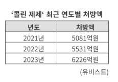 본인 부담률이 올랐지만 실제 처방액은 여전히 증가 추세다. 의약품 시장조사기관인 유비스트에 따르면 콜린제제 처방규모는 2021년 5081억원, 2022년 5531억원, 2023년 6226억원으로 매년 상승세를 보이고 있다. 의료 현장에서 콜린 제제는 여전히 중요한 치료 수단으로 쓰이고 있는 셈이다.