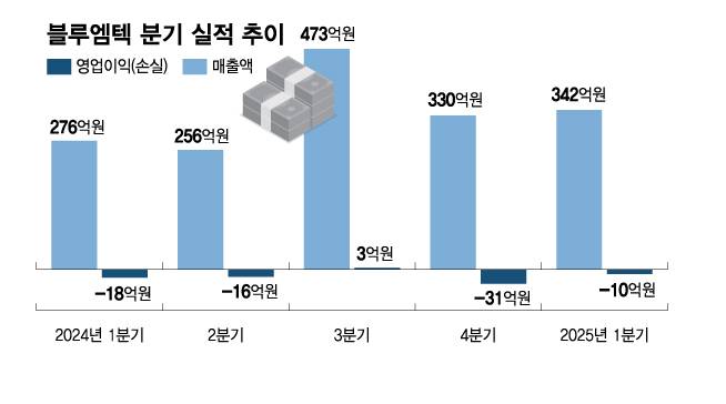 21일 블루엠텍에 따르면 이 회사는 1분기 매출액 342억원, 영업손실 10억3000만원의 실적을 기록했다. 전년 동기 대비 매출액은 23.9% 늘었고, 영업손실 역시 17억7000억원 대비 크게 개선됐다. 직전 분기 330억원의 매출에도 31억원의 영업손실을 기록한 점을 감안하면, 눈에 띄는 수익성 개선이다.