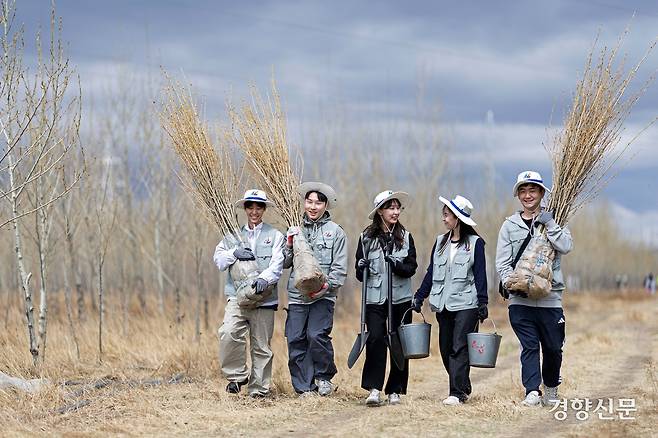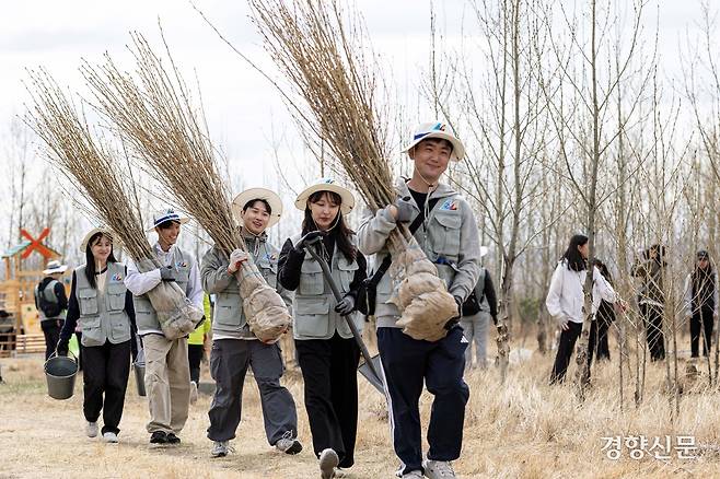 대한항공·아시아나항공 신입직원들, 몽골서 사막화 방지 식림 [현장 화보]