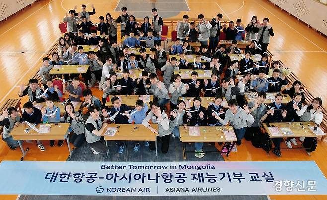 양사 임직원들은 바가노르구 인근 몽골 군갈루타이 국립학교와 볼로브스롤 국립학교를 찾아 한국어·영어·항공공학 교실을 각각 열고 체험형 수업을 진행하기도 했다.