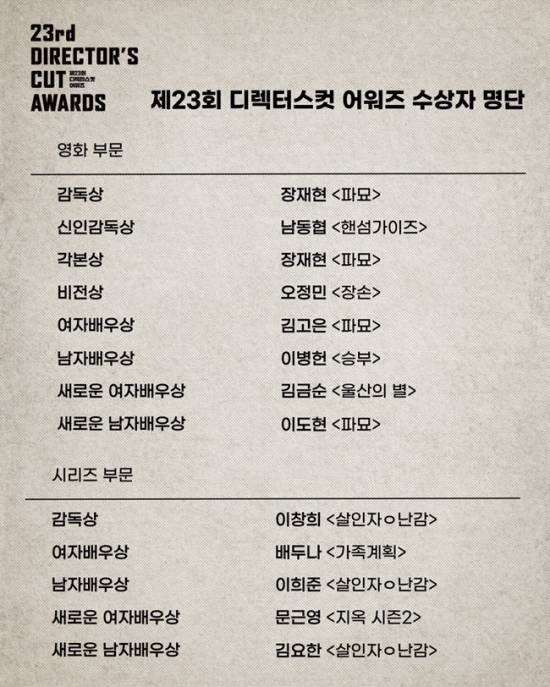 다음은 제23회 디렉터스컷 어워즈 수상자 명단