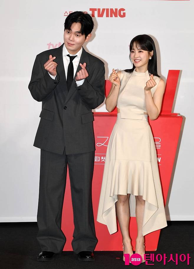 [텐아시아=조준원 기자]배우 박보영과 류경수가 21일 서울 영등포구 CGV 영등포에서 열린 tvN 새 토일드라마 <미지의 서울> 제작발표회에 참석해 포즈를 취하고 있다.
