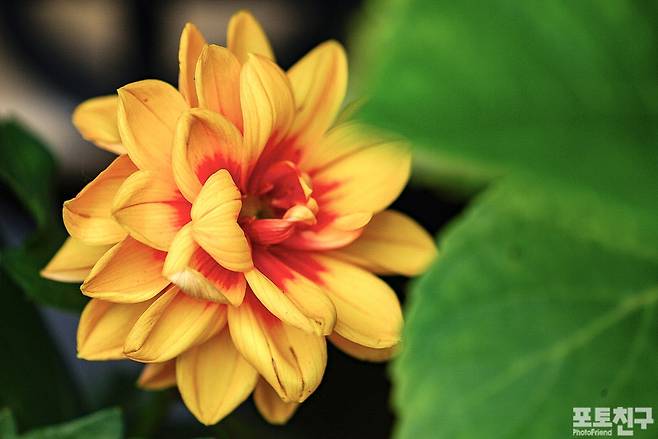 노란 다알리아와 가재발선인장 꽃도 색감이 인상적입니다.