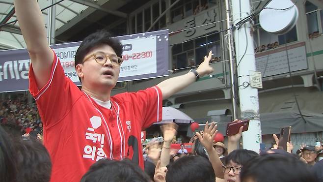 김문수 국민의힘 대선 후보를 도와 유세하고 있는 한동훈 전 국민의힘 대표가 대구 서문시장을 찾아 보수 결집에 나섰습니다.