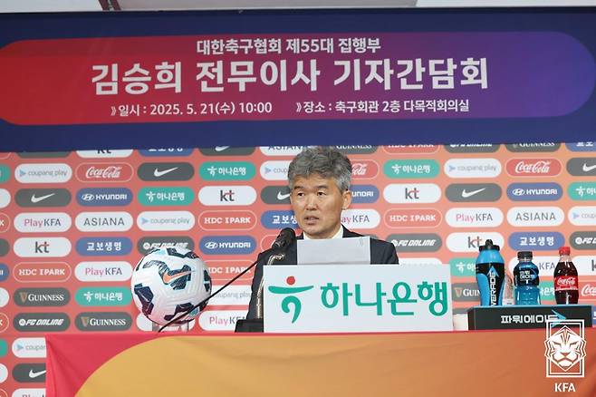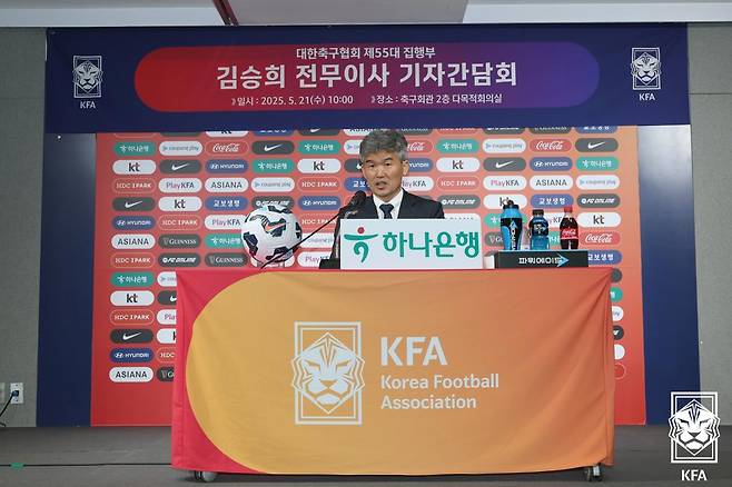 김승희 전무이사는 21일 서울 종로구에 있는 축구회관에서 기자간담회를 진행했다. 김승희 전무이사는 “밖에서 축구협회에 대해 건전한 비판을 했던 한 사람으로서, 이렇게 축구협회 행정 실무 책임자가 되어 언론 앞에 서게 될 줄은 정말 상상도 하지 못했다”라고 밝혔다.
