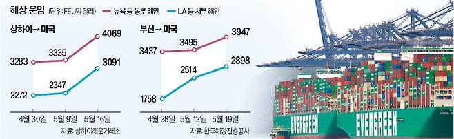 물류업계 관계자는 "상하이를 출발한 배는 부산을 거쳐 미국으로 가는 경우가 많기 때문에 상하이 요금이 오르면 부산발 요금도 덩달아 오르기 마련"이라며 "요즘은 양국의 관세 정책이 미국 수출 운임에 결정적인 영향을 주고 있다"고 말했다.