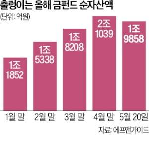 지난 1월 초 1조원을 겨우 넘긴 금 펀드 순자산액은 넉 달 새 두 배 불어났다.