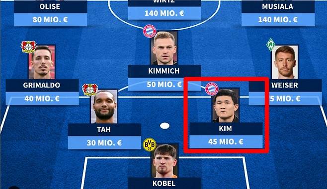 중원엔 마이클 올리세, 요수아 키미피, 자말 무시알라(이상 바이에른 뮌헨), 플로리안 비르츠(바이엘 레버쿠젠)이 배치됐고, 최전방에 해리 케인(바이에른 뮌헨)과 1월 겨울 이적시장 때 아인트라흐트 프랑크푸르트를 떠난 오마르 마르무시(맨체스터 시티)가 이름을 올렸다.