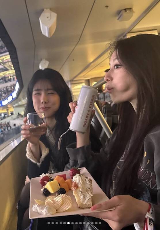 지연은 맥주를 마시며 공연을 즐기는 모습. 특히 지연의 옆에는 미모의 여성이 자리했는데 바로 스피카의 양지원이었다.
